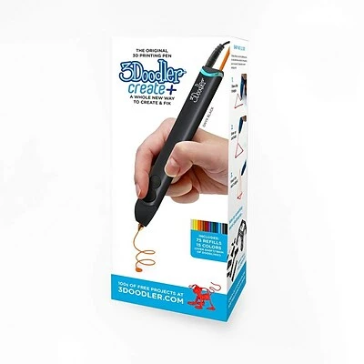Now with dual drive, the all new Create+ is re-engineered to give you an ultra smooth and enhanced Doodling experience. Improvements include greater control in fast/slow speeds for different Doodling techniques, more reliable performance with different plastic types, greater durability, and new monochromatic pen colors. Whether you’re a hobbyist, DIYer, designer, or professional artist, the Create+ offers a whole new way to create and fix. Extrude heated plastic that hardens almost instantly, so you can draw 3D structures, freehand or on stencils. Our non-toxic PLA, ABS and FLEXY plastics, are made in the USA, UK & Spain to ensure the highest quality possible. We’ve seen our community use the 3Doodler to create unique art , fix things, design wearable items, build models, and so much more! 3Doodler Create+ 3D Printing Pen, 3 packs of ABS & PLA 3mm 3Doodler plastic refills in 15 colors (that’s over 600ft / 180m of Doodling right out of the box!), Ultimate Guide of Doodling with 5 projects, User Manual, Power Adaptor and a set of Tools.