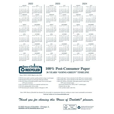 A practical academic 14 month planner, one month per two-page spread, July to August with a black 2 piece leatherette cover and a three hole punch to fit in a standard 3 ring binder.