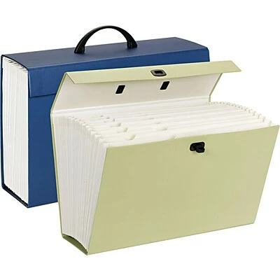 Portable 19 pockets case file has sturdy construction with a handle for easy carrying and latch to keep papers inside.