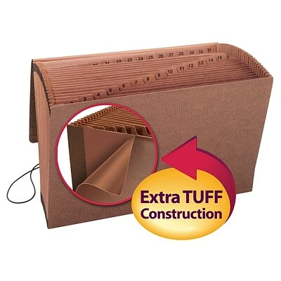 Heavy-duty expanding file folder features 31 pockets with daily 1-31 indexing to keep items neat