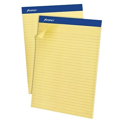 Show your concern for the environment when you purchase this Ampad notepad containing 50 percent post-consumer content and 100 percent recycled materials. The wide-ruled sheets offer ample space for large handwriting, while the canary yellow paper color contrasts pencil and pen markings to make your writing pop. Take this versatile notepad outside or to the coffee shop for doodling or journaling, thanks to the sturdy backing, which provides a stable writing surface anywhere you go.