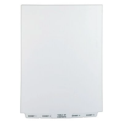 Compile legal briefs, exhibits or contracts with these letter-size dividers. The tabbed edges are numbered from 1-25 and feature a table-of-contents section to keep your documents neatly organized. An unpunched edge design works with a range of binding styles, and the rip-proof reinforced tabs withstand frequent handling. These Avery Premium Collated legal exhibit dividers feature Helvetica font for easy readability.