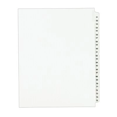Ensure client, courtroom, and other legal documents are easy to find with these exhibit index dividers. The unpunched edges work with a range of binding styles, while the bold numerals make it simple to access each section of paperwork. Reinforced tabs withstand frequent handling without ripping or bending. These Avery side-tab index dividers are numbered from 51-75, so they are ideal for large stacks of documentation.