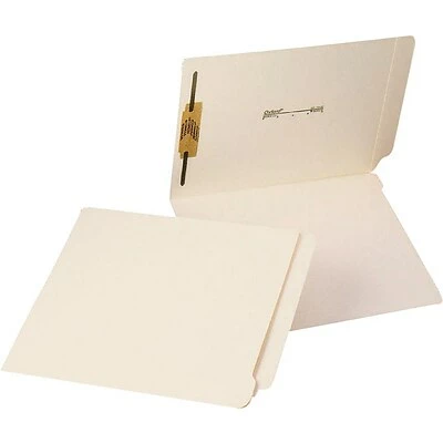 Pendaflex End-Tab Fastener Folder is ideal for sequential filing in open-shelf filing systems. Laminated spine prevents bursting or tearing, and two fasteners secure documents. Legal size, Manila. 50/Box.