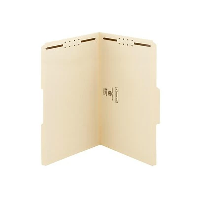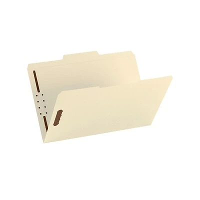 Get files in order with these legal-size two-fastener manila file folders. The 1/3-cut-tab design offers ample room for applying or handwriting labels, while the 11-point manila stock makes these folders durable. These Smead manila file folders come in a box of 50 and have two fasteners that hold documents firmly in place and let you subdivide them into major groups.