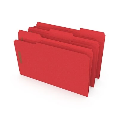 Keep reports, memos, forms and other documents neatly organized with these reinforced-tab fastener folders. The 1/3-cut tab layout ensures labels remain visible inside file drawers, and the heavyweight construction stands up to frequent reuse. Each folder features an expandable design to accommodate thick stacks of legal-size documents, keeping pages protected inside. Boasting sturdy fasteners in two positions, these Staples legal-size red fastener folders let you customize your office filing system.