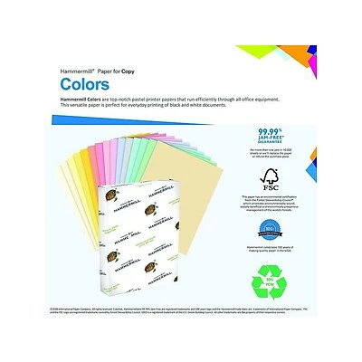 Print sleek newsletters, invitations and, other forms with this cream-colored copy paper. With 500 sheets to a ream, this Hammermill Colors 20-pound copy paper easily covers office document needs.