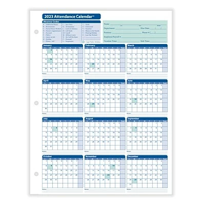 Using a calendar-style format, the ComplyRight Attendance Calendar cards let you record employee absences right on the card. Just choose the appropriate absence code from the list, or create your own, and mark it on the date. Using these cards, will help you take control of costly absenteeism, so you will always know who is on the job and who has called in sick three Mondays in a row. Armed with this information, you can address unscheduled or excessive absences before they get out of hand.