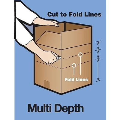 Multi depth style cartons are scored at intervals on the sides of the box. To obtain the desired size container, simply cut down to the height wanted. No need for a special carton sizing tool.