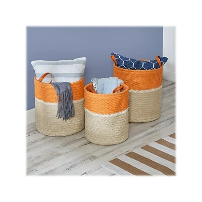 The Honey-Can-Do fun straw baskets can be used as everything from modern baby laundry hampers to toy or blanket storage bins, helping you organize the laundry room, add a boost of storage to the nursery, or hide away magazines and remotes in the living room – the options are endless. The double-handle design makes it simple to tote the baskets around the house. And when not in use, the baskets nest for convenient storage. The baskets are equally functional and stylish, with the textural paper straw weave sporting modern color blocking that brings a pop of color to your space.