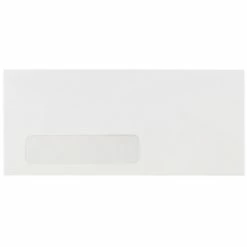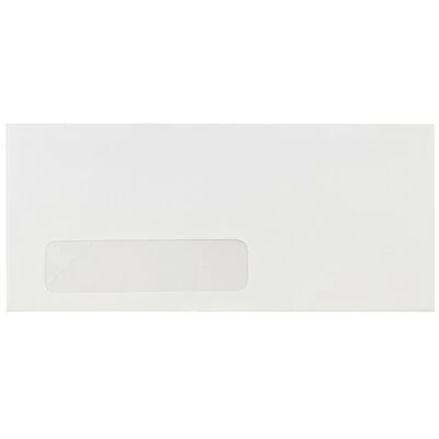 JAM Paper® #10 Commercial Window Envelopes are essential for businesses worldwide. These classic white envelopes allow you to send invoices, statements, letters, and more to clients and customers with ease! The translucent plastic window displays names and addresses, eliminating the need to write on the envelope. This pack contains 100 commercial window envelopes. Each envelope measures 4 1/8″ x 9 1/2″, has a booklet opening, straight flap, gum closure, is made from 24 lb. paper, and has a smooth finish.