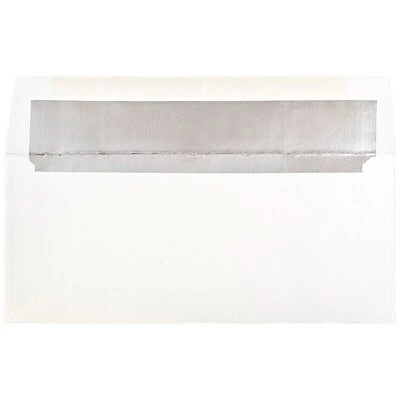 JAM Paper® White #10 Envelopes with Silver Foil Lining measure 4 1/8 x 9 1/2 inches in size and are made out of smooth, 24lb paper. These envelopes feature a bright and basic white color on the outside and have silver foil linings on the inside. This pack contains 50 envelopes. To keep the items places inside them secure as they travel through the mail, these envelopes have straight flaps and reliable gum closures. The luxurious silver linings of these envelopes makes them excellent for mailings related to special occasions or items sent during the Christmas season! Use them to enclose announcements, invitations, holiday greetings, and more!