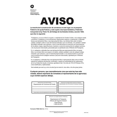 ComplyRight™ DOT federal notice Spanish poster makes an ideal choice for roadway construction employers/workers. Laminated poster measuring 8 1/2″ x 11″ provides information relates to specific rights and obligations of construction.