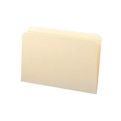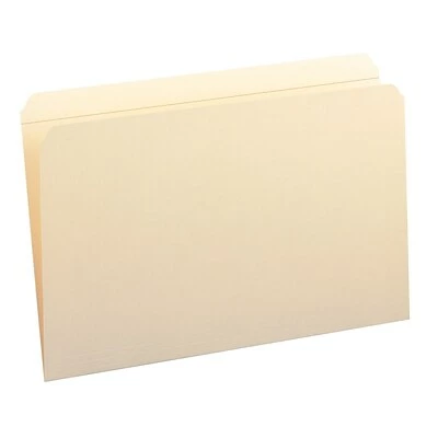 Store documents in file cabinets with these Smead legal-size manila file folders. The full-length tabs provide generous space for labeling, so you can add full names or color-coded label systems. Each tab features reinforced construction for added strength, and the standard thickness, heavy-duty material stands up to everyday use. These Smead legal-size manila file folders come in a 100-count box, providing an ample supply for transitioning your current filing system.