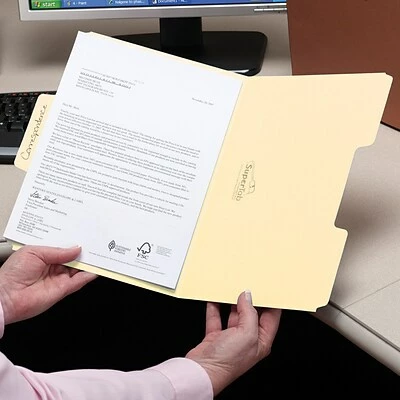 Sort legal, medical or financial forms with these Smead SuperTab manila file folders. The large tabs provide ample room for color-coding or letter and number systems, making it easy to arrange your documents in a variety of ways. Durable 11-point construction ensures long-lasting use in your filing cabinets, and the versatile design means these Smead SuperTab manila file folders are ideal for both vertical and lateral systems.
