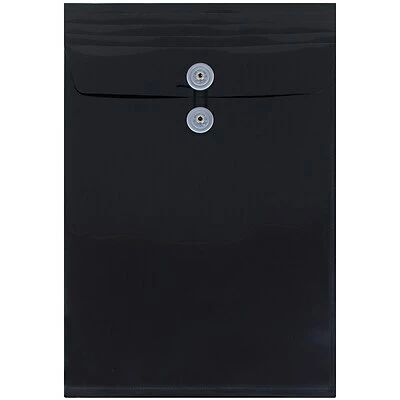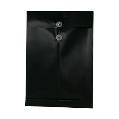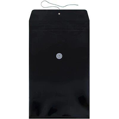 JAM Paper® Black Legal Open End Plastic Envelopes with Button and String Tie Closures are the ideal storage and carrying unit for all of your important or private documents. Made of pliable yet durable plastic, this envelope will protect your documents from scratches, bends, and dents! Each one has a two button string tie closure to keep your papers secure. They provide 9 3/4 x 14 1/2 inches of storage space for standard to large sized documents, and a jet black color which will ensure that your documents cannot be seen from the outside! If your transporting or storing any of your important documents, don’t take the risk that they will get damage or lost. Instead, keep them safe, sound, and organized with this black envelope! This pack includes 12 envelopes.