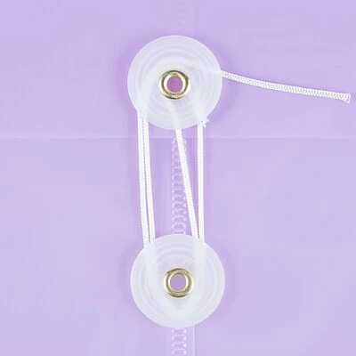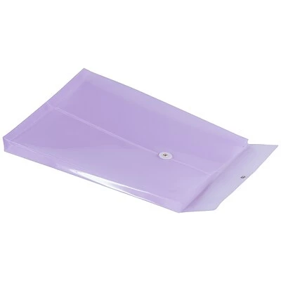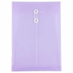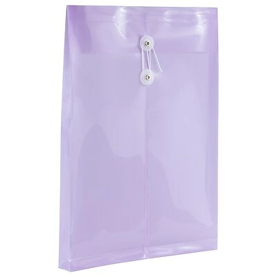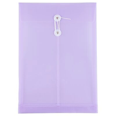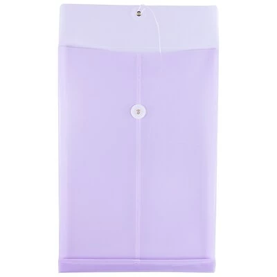 JAM Paper® Lilac Purple Legal Open End Plastic Envelope with Button and String Tie Closure are made of pliable, yet durable plastic and are sized to fir standard to large sized documents. Each one features a straight flap opening on the top end and a two button string tie closure to keep your documents secure. With a calming purple, semi-transparent surface, these envelopes allow you to store, carry, and organize your documents with a burst of color while still being able to view them from the outside. These envelopes are 9 3/4 x 14 1/2 inches in size. Protect your documents from getting scratched, bent, ripped, or lost in the messes of life with this 12 pack of bright envelopes!