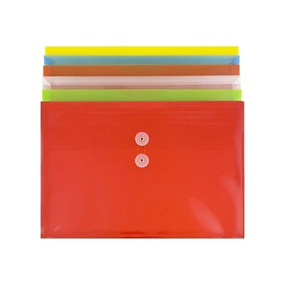 Get durable protection for forms, reports and other important documents with these assorted-color legal booklets. Each one is manufactured with poly for protection against moisture, dirt, wrinkling and ripping. These Jam Paper legal booklets come in a pack of six assorted colors and feature a button-and-string closure that keeps contents secure until you are ready to access them.