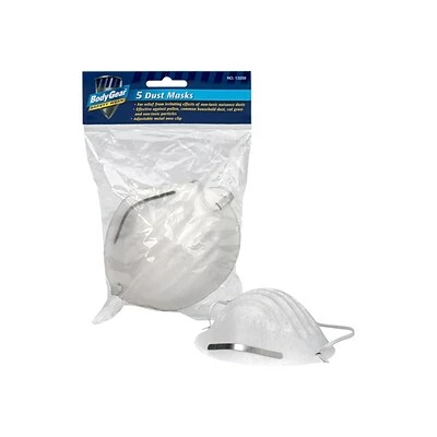 Find relief from the nuisance of dust, wood shavings, pollen and other non-toxic particulates with these masks. These Body Gear dust masks feature adjustable nose clips for a lightly customizable fit.
