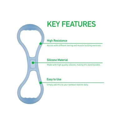 This figure 8 resistance band may be used for sports and fitness by both experienced athletes and beginners; it may also be used in rehabilitation of neck, shoulder, arm, leg, and back injuries