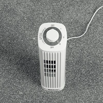 Need cooling on the go? The Optimus 3-Speed 14-In. Portable Ultra-Slim Desktop Oscillating Tower Fan in White is a smart, safe, and convenient way to cool down during hot summer months. This oscillating fan is designed with a narrow footprint so it can easily fit on your desk, tabletop, or in the corner of a room. But don’t let its 14 in. height fool you. With 3 swing settings with a max of 70° oscillation, the fan not only provides comprehensive coverage to a specific place, but also assures a well-ventilated room. It’s also amazingly portable, thanks to its convenient carrying handle and a light weight of just 2.06 lbs.