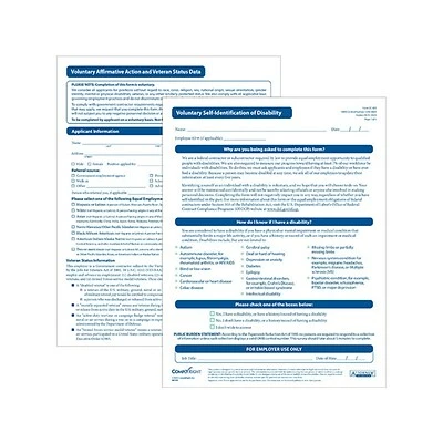 As of August 4, 2020, businesses with 50 or more employees that hold federal contracts worth at least $50000 face new recordkeeping requirements. As part of their affirmative action obligations, these federal contractors and subcontractors must now invite job applicants and employees to self-identify as persons with disabilities and collect information to assess the effectiveness of their outreach and recruitment efforts. Use the ComplyRight Voluntary Affirmative Action forms bundle to record efforts to provide equal opportunities for protected veterans and qualified people with disabilities. The bundle includes two separate forms: Voluntary Affirmative Action and Veteran Status Data form, Voluntary Self-Identification of Disability form.