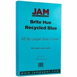 Nothing says “bright” louder than some JAM Paper® Bright Colored Legal Cardstock! And our colors stand up to that name! This particular cardstock is a brite hue blue color. It is a medium shade of vibrant blue, close to turquoise. This beautiful cardstock not only looks luxurious, it feels it as well. It is made of 65lb paper, meaning it is thick but still easy to work with. Whether you are writing on this paper or printing on it, the smooth surface offers the perfect canvas. This cardstock measures 8.5 x 14 inches, so it is a legal size. Use this cardstock for all of your paper needs: invitations, letters, notes, cards, business mailings, flyers, posters, promotional projects, arts and crafts and more! It is made of 30% recycled content and is sold in packs of 50.