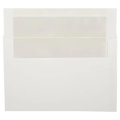 JAM Paper® White with Ivory Foil Lining Invitation Envelopes measure 5.75 x 8.75 inches in size and are made out of smooth, 24lb paper. This pack contains a total of 25 envelopes. Each one features a clean and simple white color and a shiny silver lining on the inside! These booklet style invitation envelopes have straight flaps and reliable gum closures to keep items secure as they travel through the mail! Use these versatile and elegant envelopes to mail invitations and greetings for any kind of special occasion! They are fantastic for mailing holiday greetings, Christmas party invitations, wedding invitations, and more!