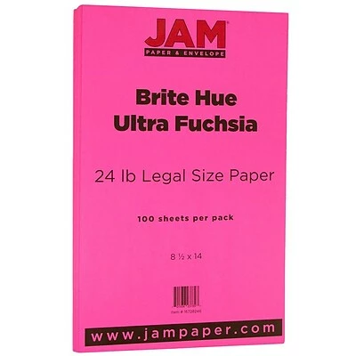 This fuchsia paper is so bright, you’d think it’d be illegal. However, it’s quite the opposite. JAM Paper® 24 lb. Brite Hue Ultra Fuchsia Pink Recycled Legal Paper measures 8.5 x 14 inches per sheet. This pack contains a total of 100 sheets. This smooth, 24 lb. paper features a stunning and vibrant fuchsia color that will stand out anywhere! Printer compatible, this legal sized paper can be used to create flyers, brochures, and other promotional material that is certain to get the attention of any audience. The unique color of this paper also makes it fantastic for arts and crafts and DIY projects. Use it for origami, scrapbooking, quilling, making DIY decorations, and more!
