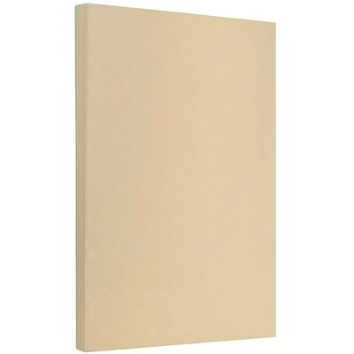 JAM Paper® 24lb Brown Recycled Parchment Legal Size Paper measures 8.5 x 14 inches per sheet (legal size). This pack contains an even total of 100 sheets! This high quality, 24lb paper is made with 30% recycled materials! It featured a light brown, vintage parchment color and a slight texture. This acid free, printer friendly paper is great for a wide variety of purposes! Use this brown parchment paper to create your own invitations, programs, greetings, flyers, promotional materials, personalized stationery, and much more! This paper is also a great choice for arts and crafts projects such as scrapbooking and DIY decorations!