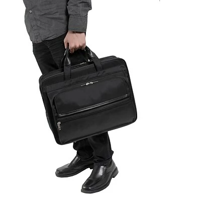 Easily carry your laptop and more with this detachable-wheeled laptop case (56445). This case is spacious enough to carry a mid sized laptop in its padded compartment with more space for your documents. Double top handles make it easy to hold. The tech-lite ballistic nylon bag makes it convenient to organize all your business essentials owing to its multiple compartments.