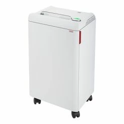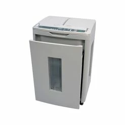 Shreds credit cards, staples, and paper up to 100 sheets at 8′ per minute