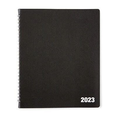 Keep a reminder of tasks to accomplish on your desk with this black monthly appointment book. The 14-month format lets you easily plan ahead, while the ruled lines offer efficient use of space. This Staples 7 x 9-inch black monthly appointment book features a spiral spine construction for easy page access, and the Pajco cover keeps the contents protected.