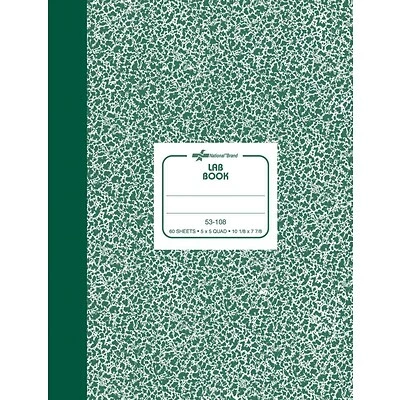 Ideal for students and scientists, the National® Laboratory 5 x 5 Quad Notebook comes with 96 sheets of white recycled paper in a green marble cover. Each page is quad-ruled and all pages are center sewn for added durability.