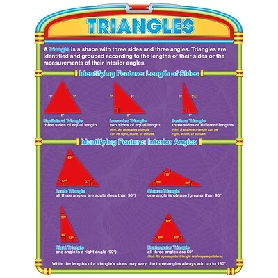 North Star Teacher Resources Introductory geometry bulletin board poster set explains different types of angles and triangles and each poster measures 17″ x 22″. Set explains the fundamentals of geometric formulas and equations.