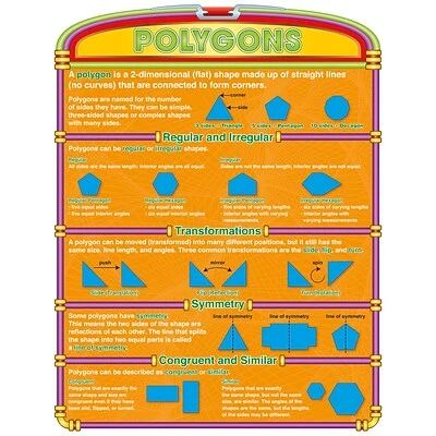 Featuring polygons and 3-D shapes, the posters introduce different types of angles and triangles and teach students the fundamentals of geometric formulas and equations