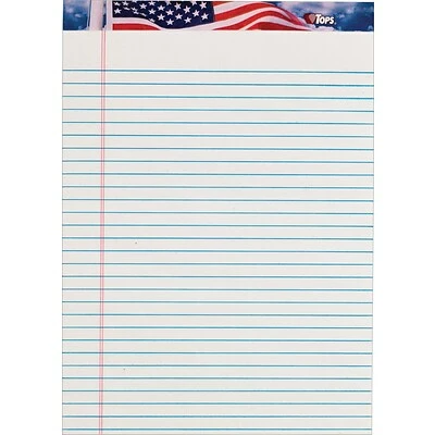 U.S. flag headtape. Letr-Trim® perforated. Paper made from recycled fiber content. White paper. Legal/Wide rule. 8-1/2″ x 11-3/4″. 50 sheets. 12 pads per pack.