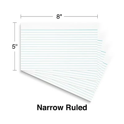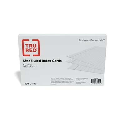 Prepare for presentations with these large white index cards. The uniform size helps keep notes looking organized and professional. These Staples Business Essentials 5 x 8-inch line-ruled white index cards come 100 to a pack for versatile use.