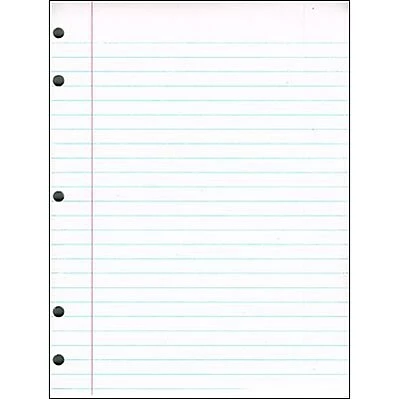 Quality writing paper is excellent for themes and penmanship. Clear smooth white bond paper. Printed on both sides. Ream of 500 sheets. Recyclable. Sheets measure 8″ x 10.5″, 3/8″ wide rule, red margin, 5-hole punched.