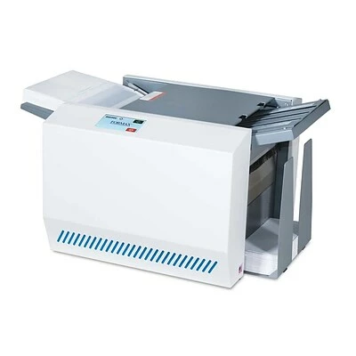 Setup and use is simple with a touchscreen control panel and pre-marked fold plates for standard folds for 11” and 14” fold sizes. Fold types include Z, C, Uneven Z, Uneven C, Half and custom folds. Additional features include a drop-in top feed system for dependable feeding, a 6 digit resettable counter and a catch tray for neat, sequential stacking.