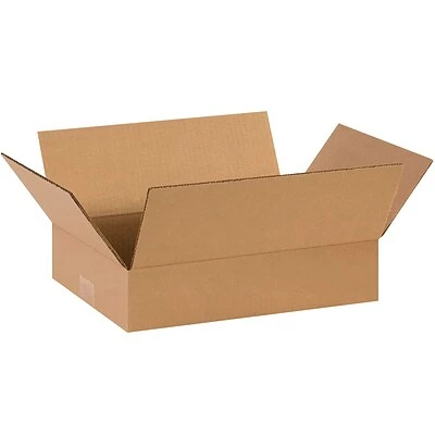 14″ x 10″ x 3″ Flat Corrugated Boxes. The smaller depths on these cartons provide an ideal fit for shallow products. Perfect for shipping apparel, books, picture frames, artwork, mirrors and clothing. Boxes are manufactured from 200#/ECT32 kraft corrugated. Cartons are sold in bundle quantities and ship flat to save on storage space and shipping.