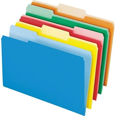 Interior file folder fits neatly inside a hanging folder without obscuring tabs. Folder features two-tone design that prevent misfiles and is reversible to double your color options.