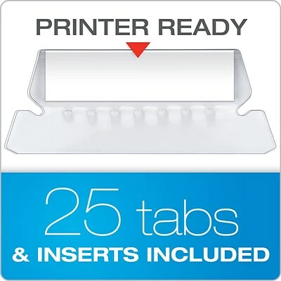 Includes 25 clear repositionable tabs and an 8.5″ x 11″ printer-ready label sheet