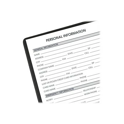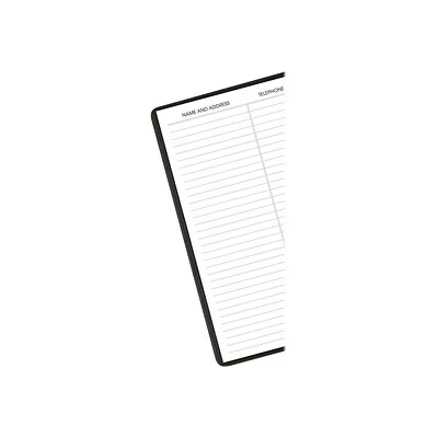 Features a black simulated leather cover and twin-wire binding