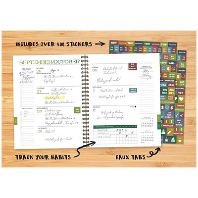 Includes spiral binding, monthly faux tabs which make accessing information a breeze, and over 300 stickers to dress up special days like birthdays and other upcoming events on your social calendar