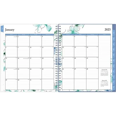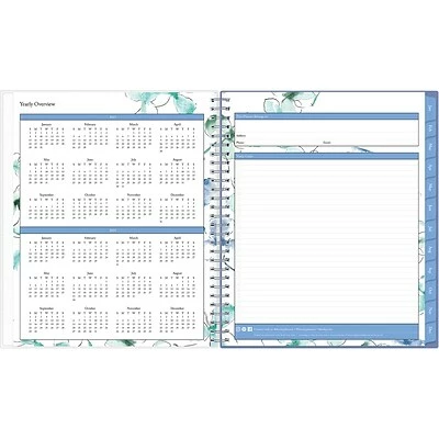 The Blue Sky 2023 monthly planner with storage pocket provides a big picture overview of your schedule. The planner features tabbed monthly planning calendars, dedicated notes pages, and a frosted flexible cover featuring a blue and green watercolor Lindley design. At just 20 pages, this conveniently-sized monthly agenda won’t add bulk when you’re on the go. Dated from January 2023 to December 2023.