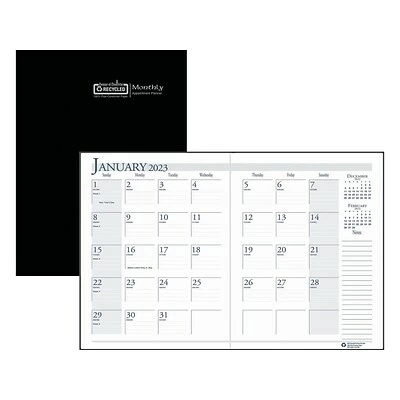 The one-piece black stitched cover makes this House of Doolittle appointment planner very thin and easy to carry in purse or brief case. Lightly ruled daily blocks keep notations neat. Additional information pages include important dates and holidays, a three-year reference calendar, and a lined contact information page.