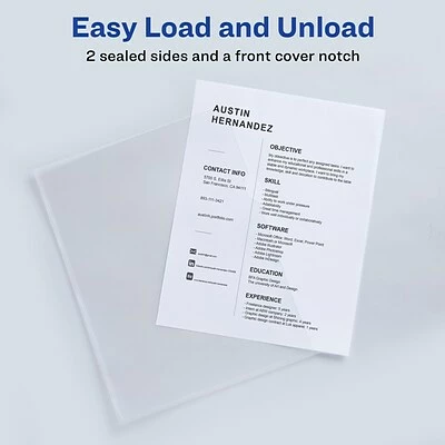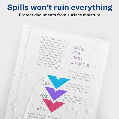 Store frequently handled documents with these letter-size sheet protectors. The clear construction keeps pages visible for easy reference, and handy notches let you load and remove papers effortlessly. Archival-safe, acid-free materials make these protectors ideal for long-term filing. Each sheet protector features a non-stick surface to prevent ink and toner from lifting off the page. Featuring two sealed sides, these Avery heavy-duty plastic protectors keep paper stashed securely inside.