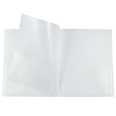 JAM Paper Clear 4 Pocket Heavy Duty Multi Pocket Folders are made out of smooth, heavy duty plastic and measure 9 x 12 inches in size each. This pack contains 2 folders. To help you store, carry, and organize your notes and documents, these folders feature two pockets on either side of the inside cover. Two additional pockets are included on either side of a translucent sheet of plastic in the middle of the folder. This makes for a total of 4 pockets within each folder. Use this multi pocket folders to store those notes of difficult classes or those documents that you do not want to lose.