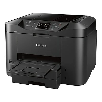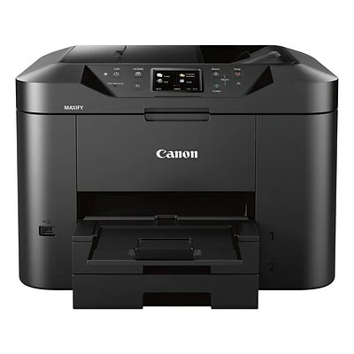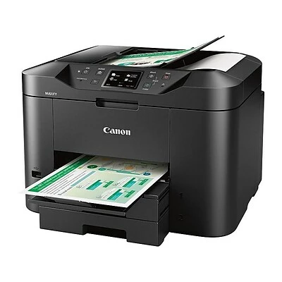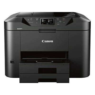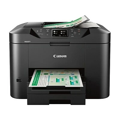 Get a compact solution to office printing, copying, and scanning needs with this multifunction color inkjet printer. Boasting first page out times as fast as 6 seconds, this machine easily keeps up with office printing needs. Advanced inkjet printing technology delivers a maximum print resolution of 600 x 1200 dpi, suitable for producing detailed professional documents and vivid, colorful presentations. The built-in copier completes jobs quickly with first copy out times of approximately 12 seconds, while the flatbed scanner digitizes documents in detail with a maximum resolution of 1200 x 1200 dpi. Featuring built-in Wi-Fi connectivity, this machine lets you queue up jobs remotely and makes it easy to send scanned images to a variety of destinations. This Canon MAXIFY printer accepts jobs directly from USB-enabled devices with its high-speed USB port.